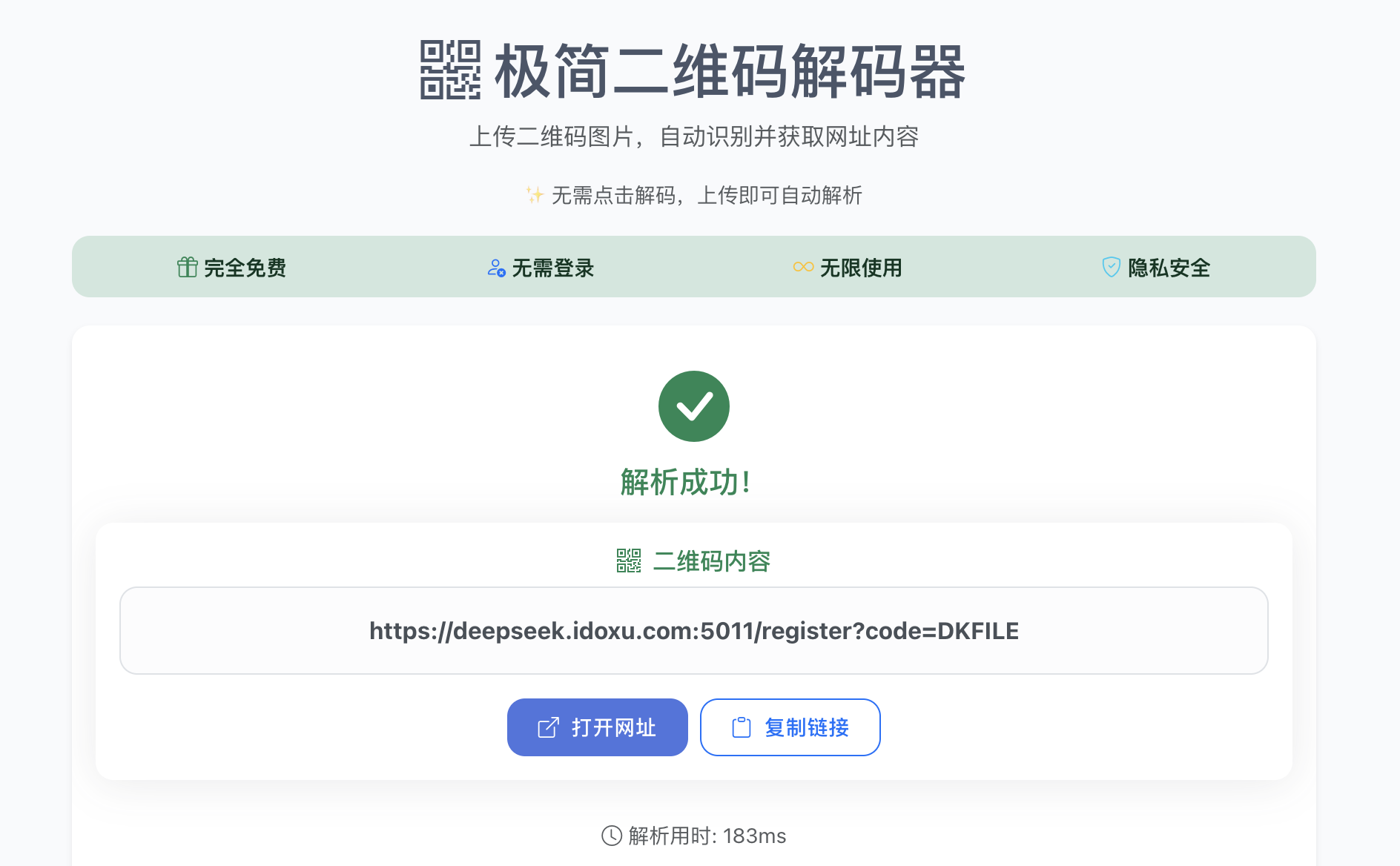 做了一个超实用的功能:二维码解析器 ,上传二维码图片(海报),自动识别网址或里面的内容,老徐自己每天要用,免费开放出来